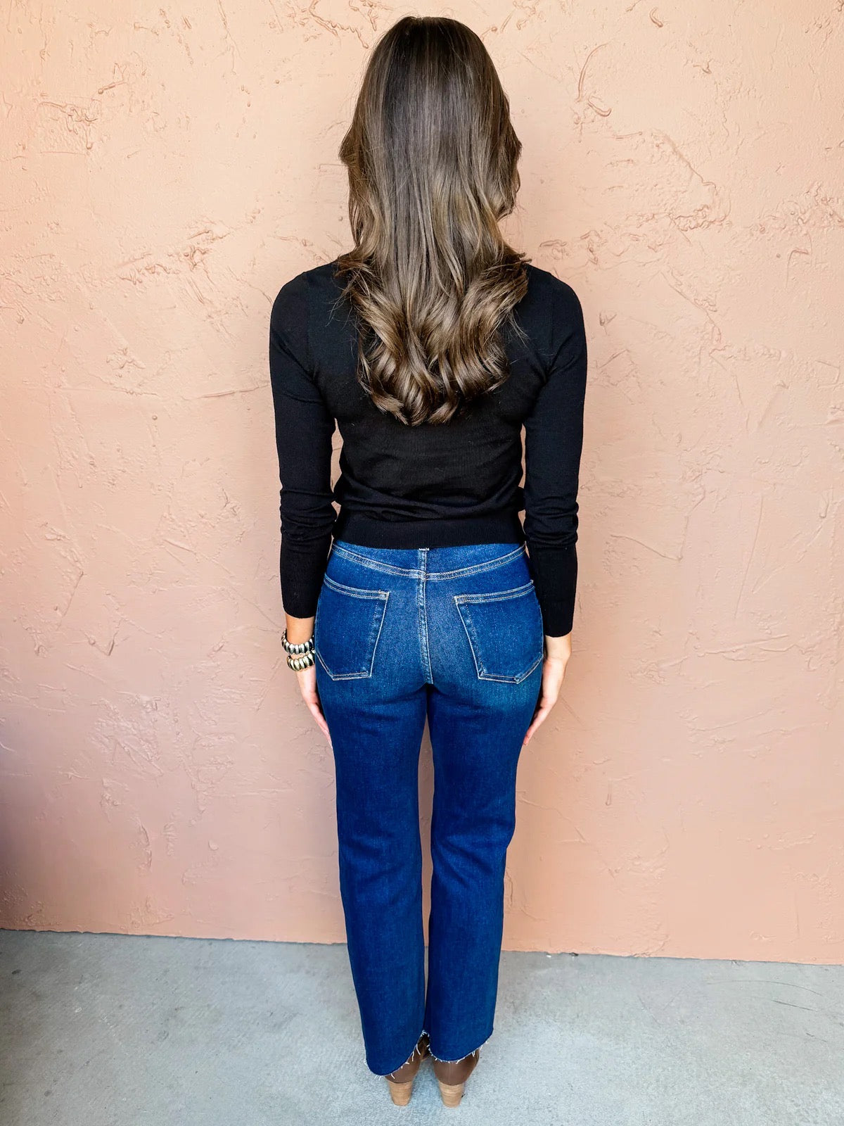 Classic, chic, and effortlessly polished this black fitted top is your go to for elevating any outfit. With its sleek silhouette and timeless simplicity, it pairs perfectly with denim, layers beautifully, and keeps your look classy from day to night.