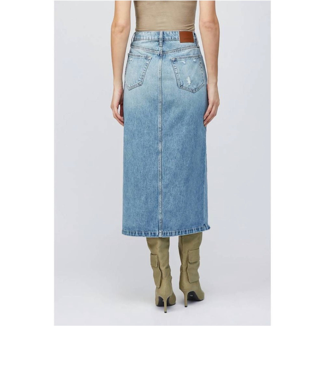 Turn heads in this statement making denim skirt featuring a daring high cut front and raw, distressed detailing. It’s edgy, unexpected, and built for the girl who isn’t afraid to steal the spotlight. Pair it with boots and confidence always.